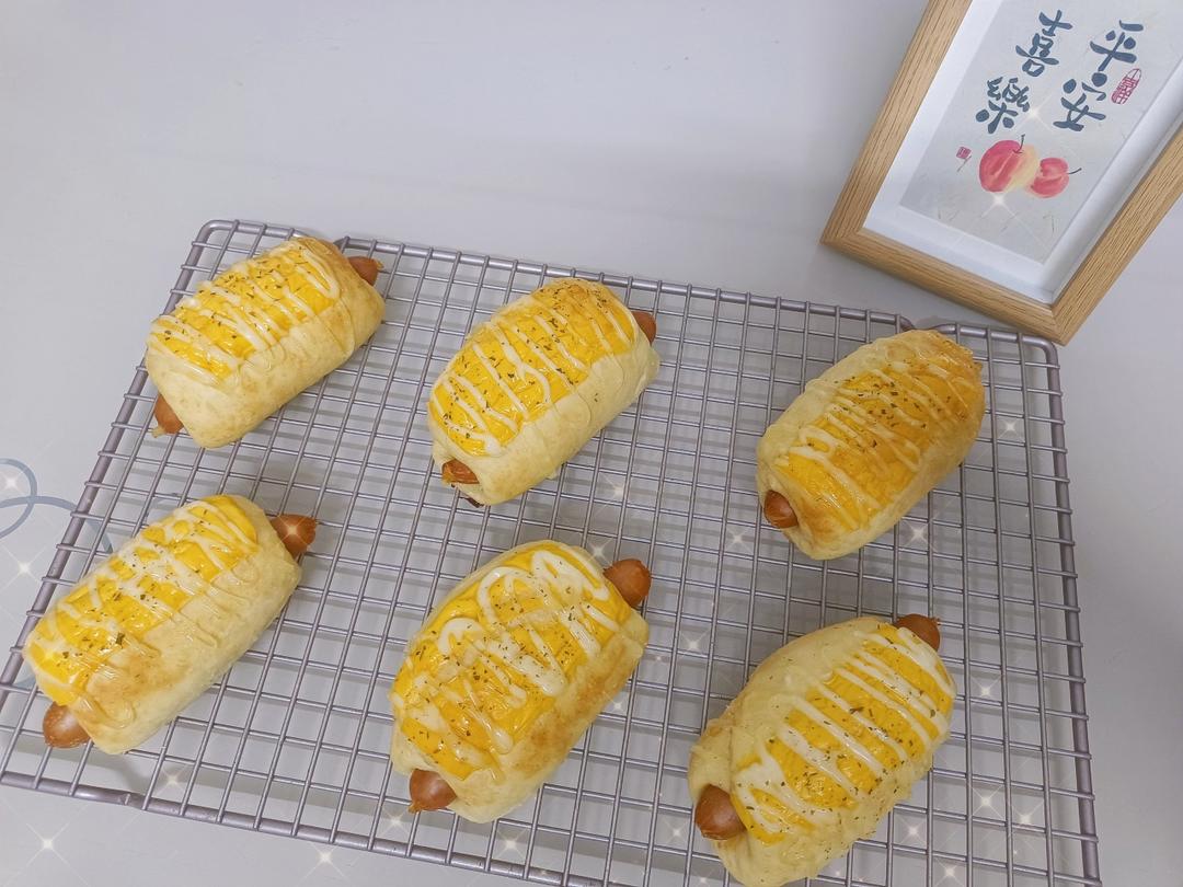 自己做的奶黄馅,还一个馅是叮咚买的芋泥乳酪球