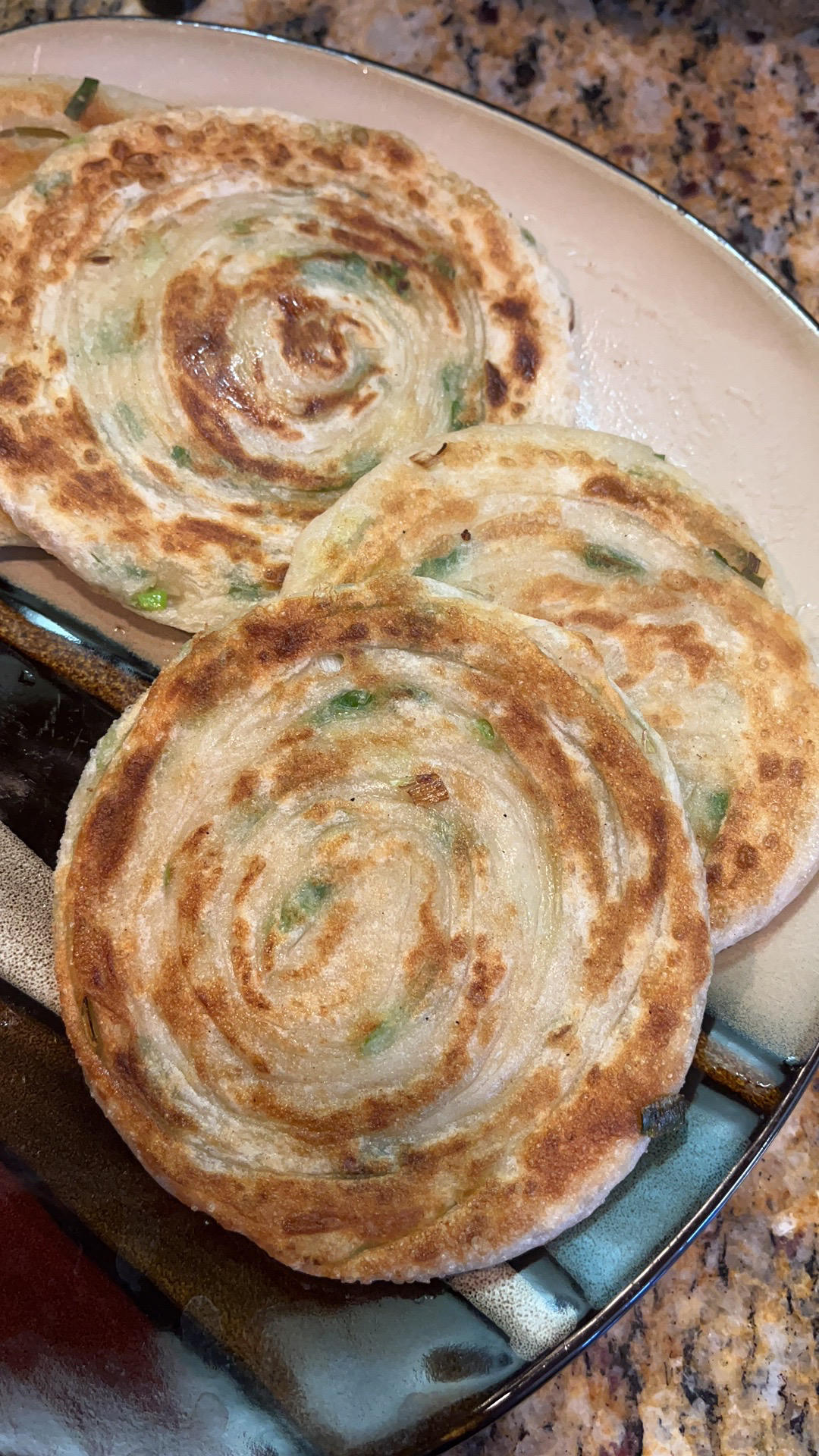 秒光的葱油饼,面揉的好是一切的核心,53%的水粉比,烫面,KA厨师机2档15-18分钟揉面,下剂子,涂油醒面至少40分钟...