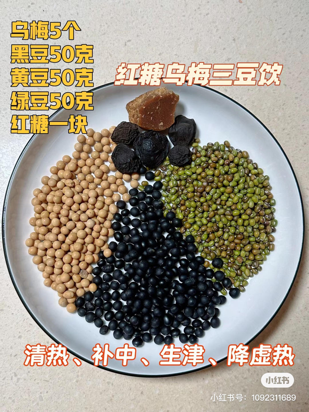 红糖乌梅三豆饮,清热、补中、生津、降虚热。