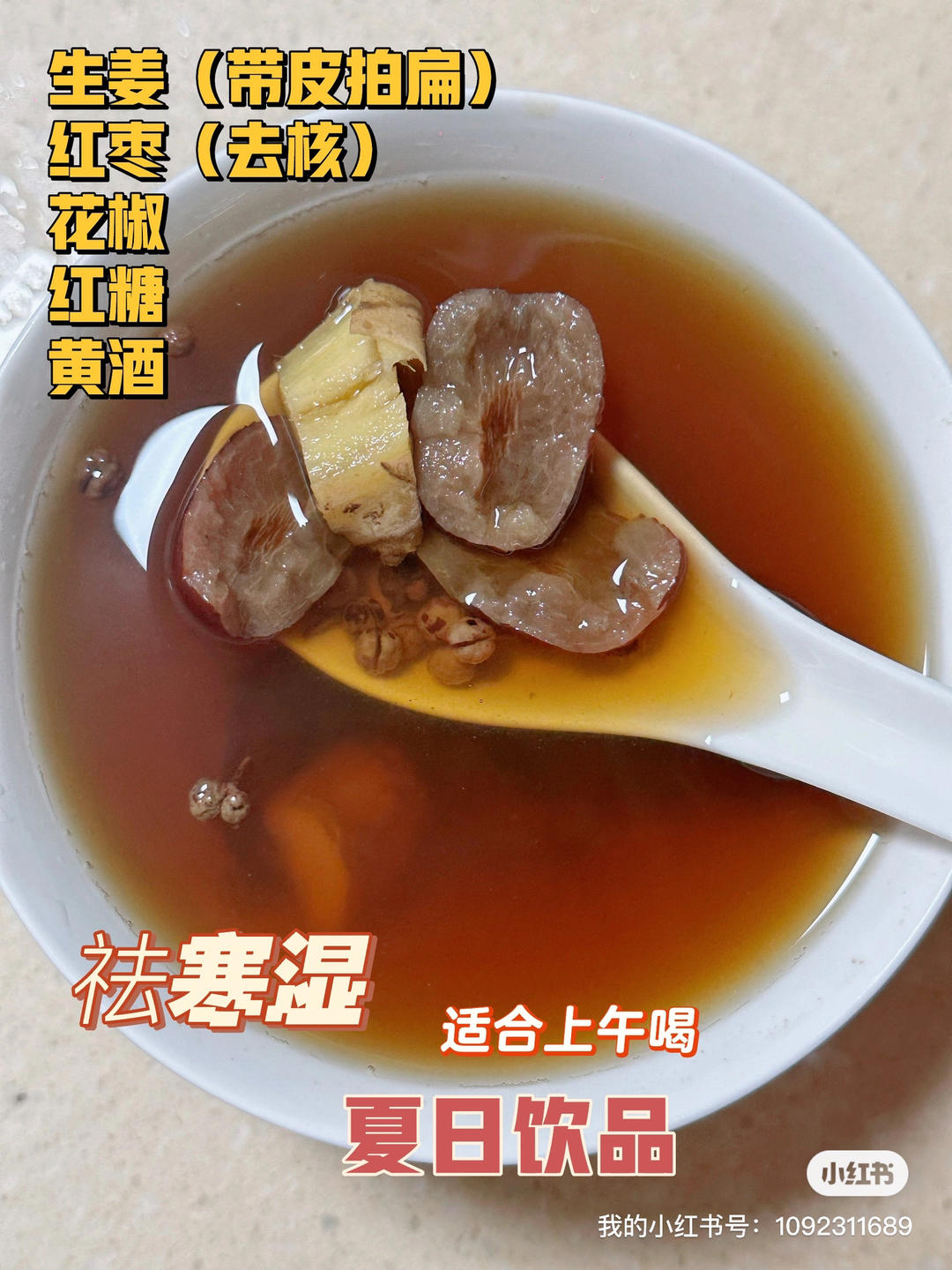 祛寒湿红糖姜枣茶。