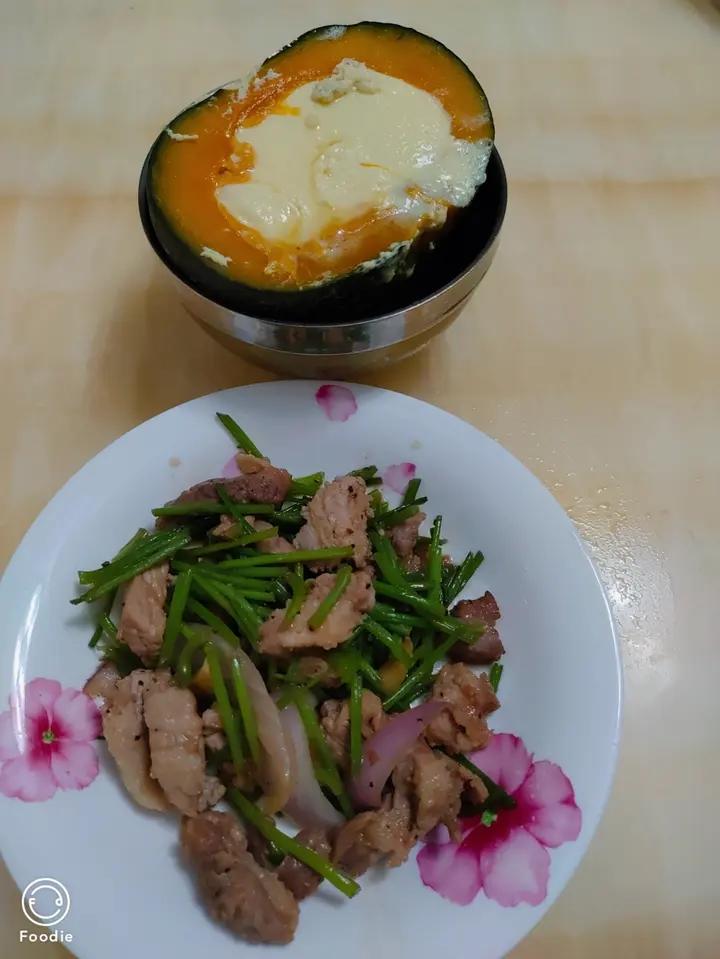 一个人的午餐 南瓜蒸蛋+猪肉炒红薯干