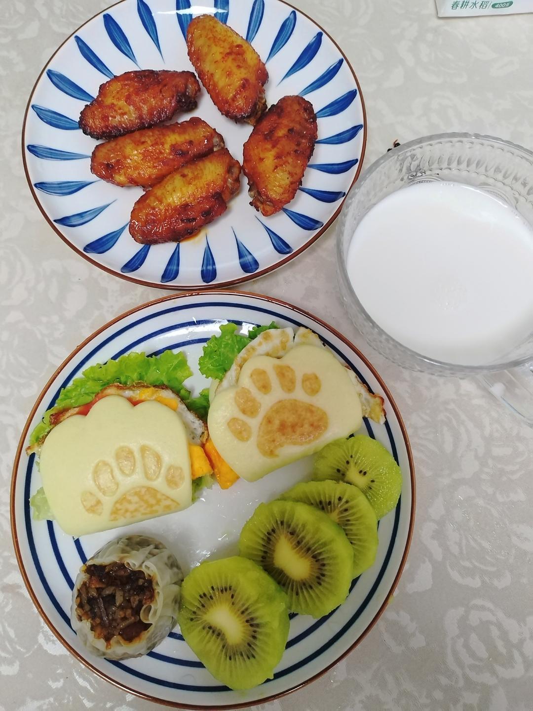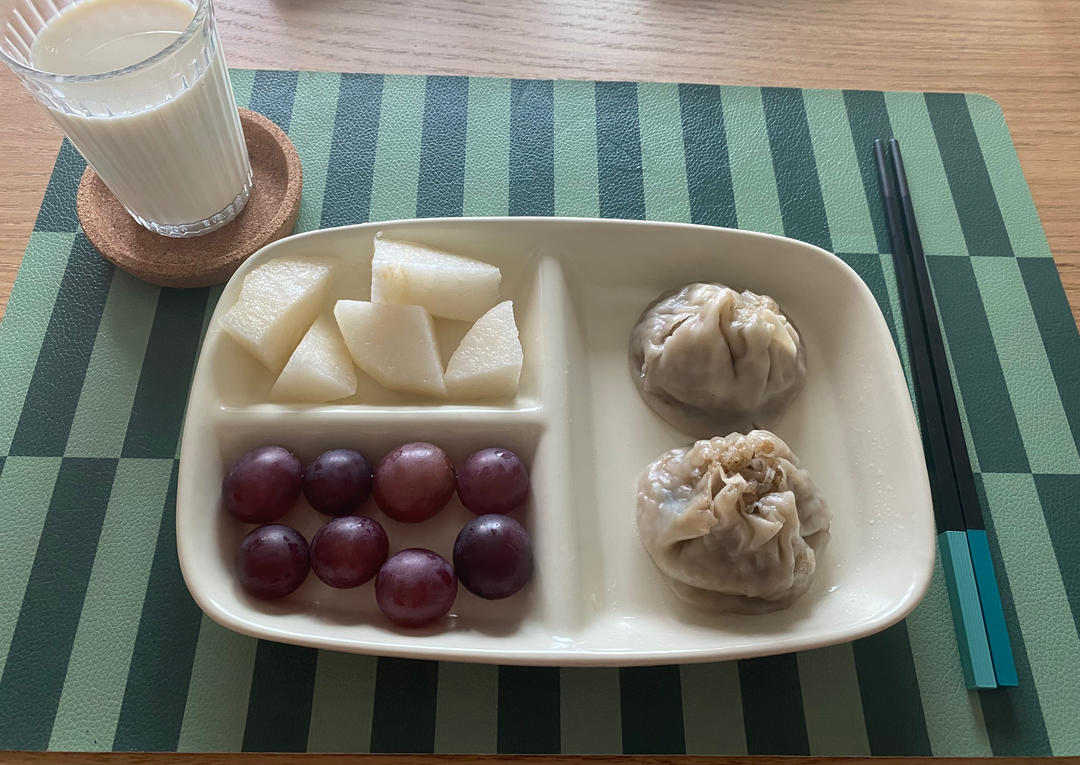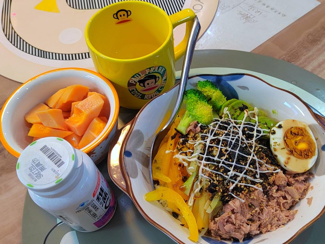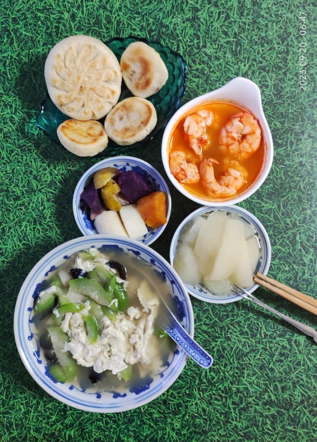 早上不太给力,那一小蝶五颜六色的营养佳品被他落下了,只吃了2个小火勺、虾、冬瓜汤。