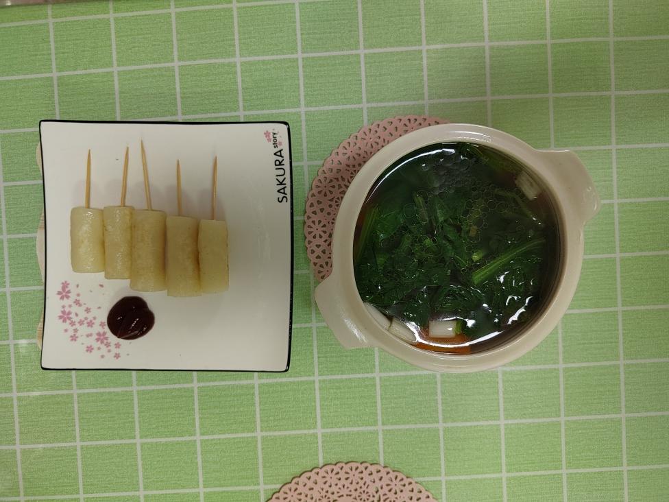 煎年糕,排骨炖胡萝卜山药油菜