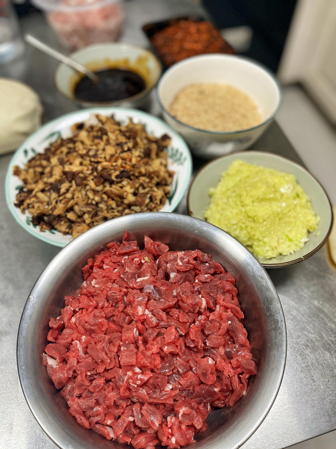 吃过晚饭熬了个牛肉酱,早上跑菜场称了两斤牛里脊,准备好配菜,晚上成品就出来啦!夹馒头、拌...