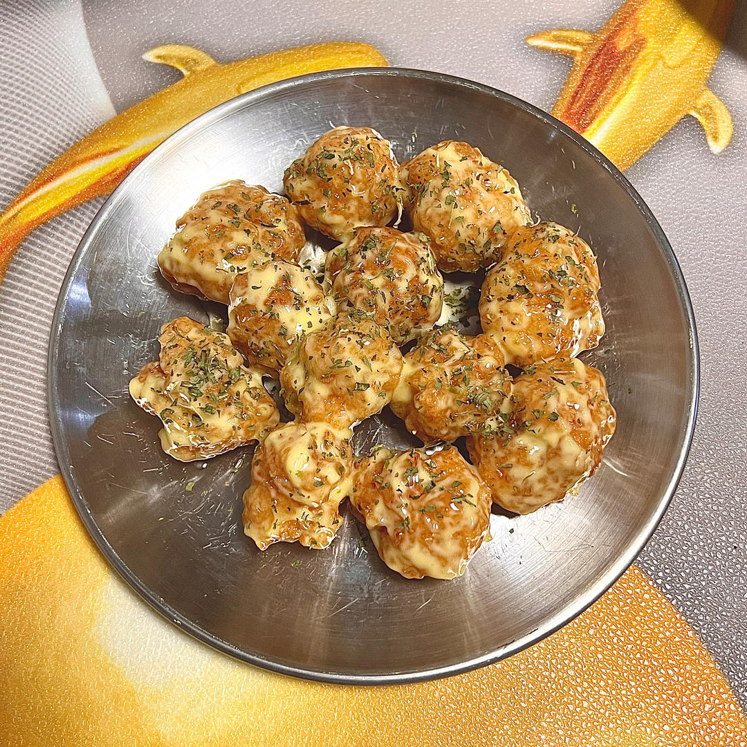 第一次尝试芥末虾球 直接用虾滑裹一层生粉小火油炸 买的黄芥末酱还没到 直...