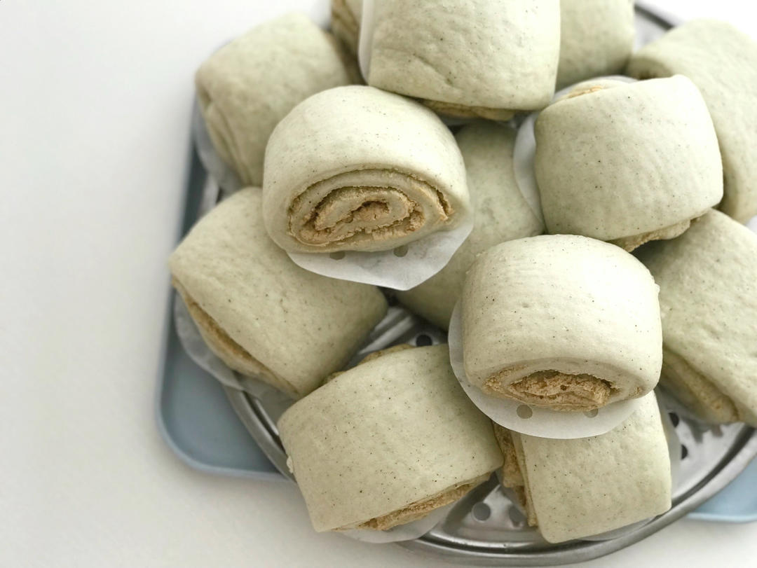 今天的黑芝麻馒头,板栗夹馅~