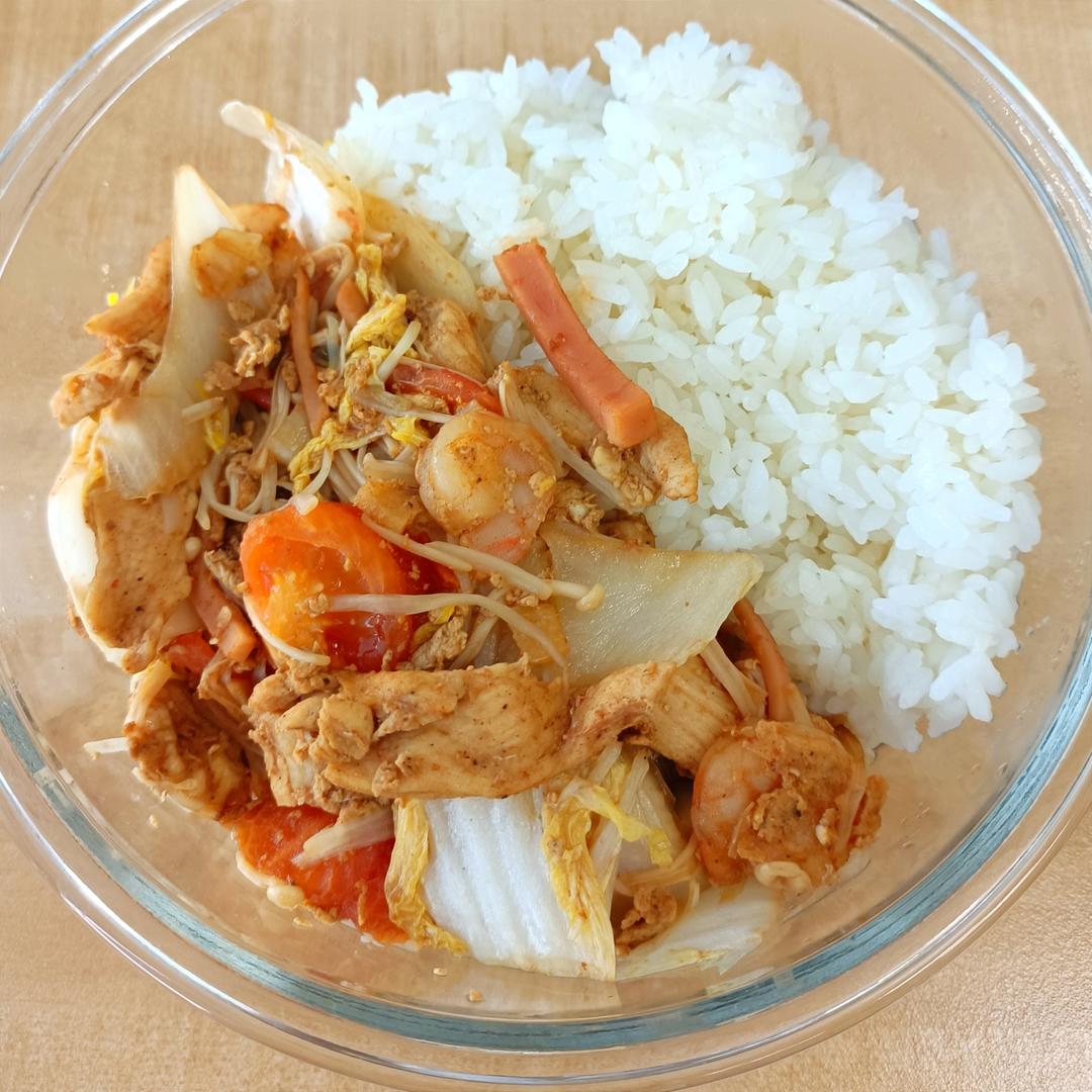 鸡胸虾仁鸡蛋番茄金针菇娃娃菜豆芽