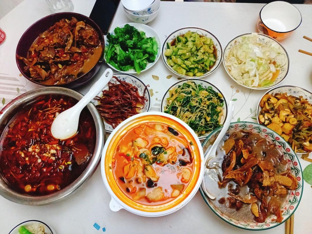 今日午餐:炝锅鱼(胖子麻辣鱼调料)、腊肥肉炒香干、番茄蛋汤