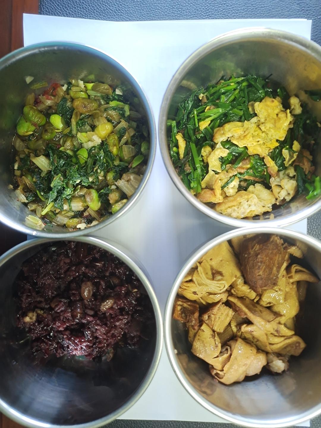 速腌青菜炒毛豆,杂粮饭,百叶结烧肉,百叶结绝绝子,韭菜炒鸡蛋