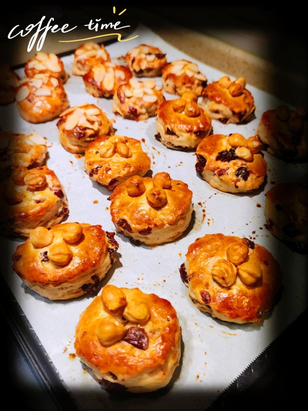 用做面包翻车面团做的蔓越莓、榛子小饼
