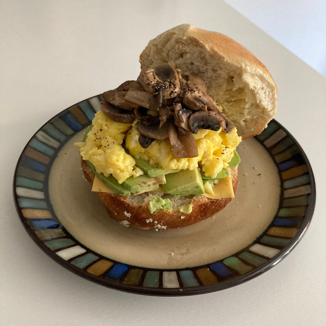 好看的白人饭 滑蛋蘑菇牛油果贝果🥯
