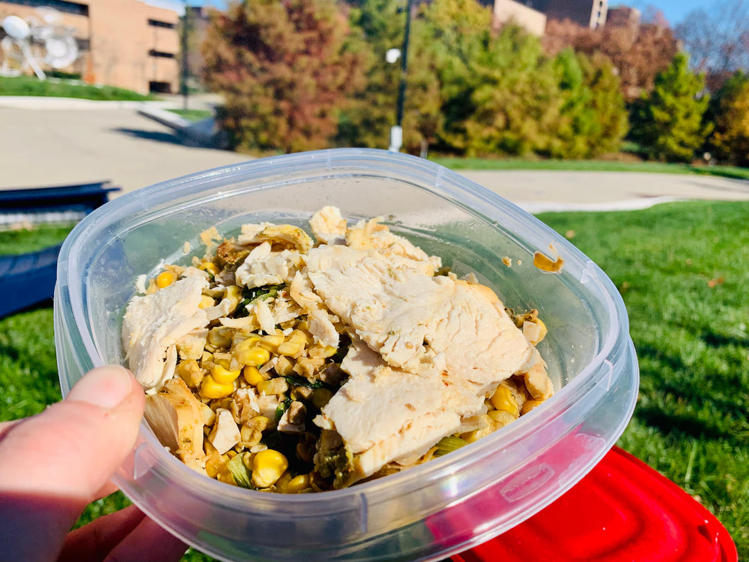 今天天气很好在外面吃饭!健身完之后要吃鸡...