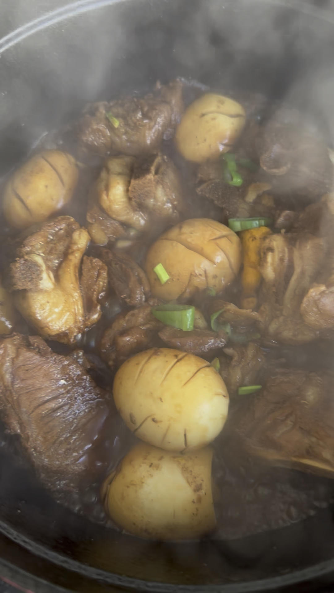 红烧羊肉加蛋,撒葱,收汁中😍😍