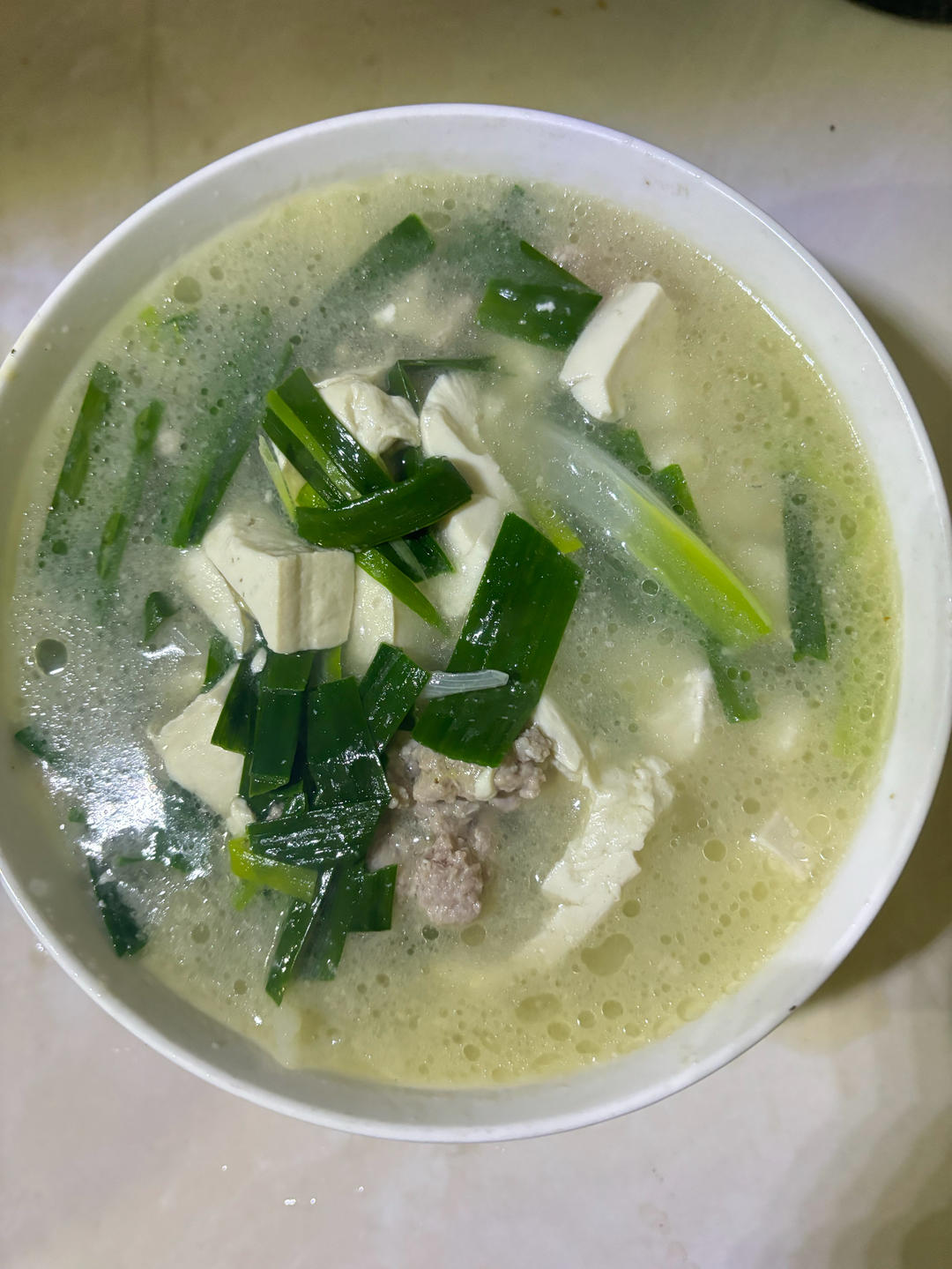 大蒜叶滚豆腐