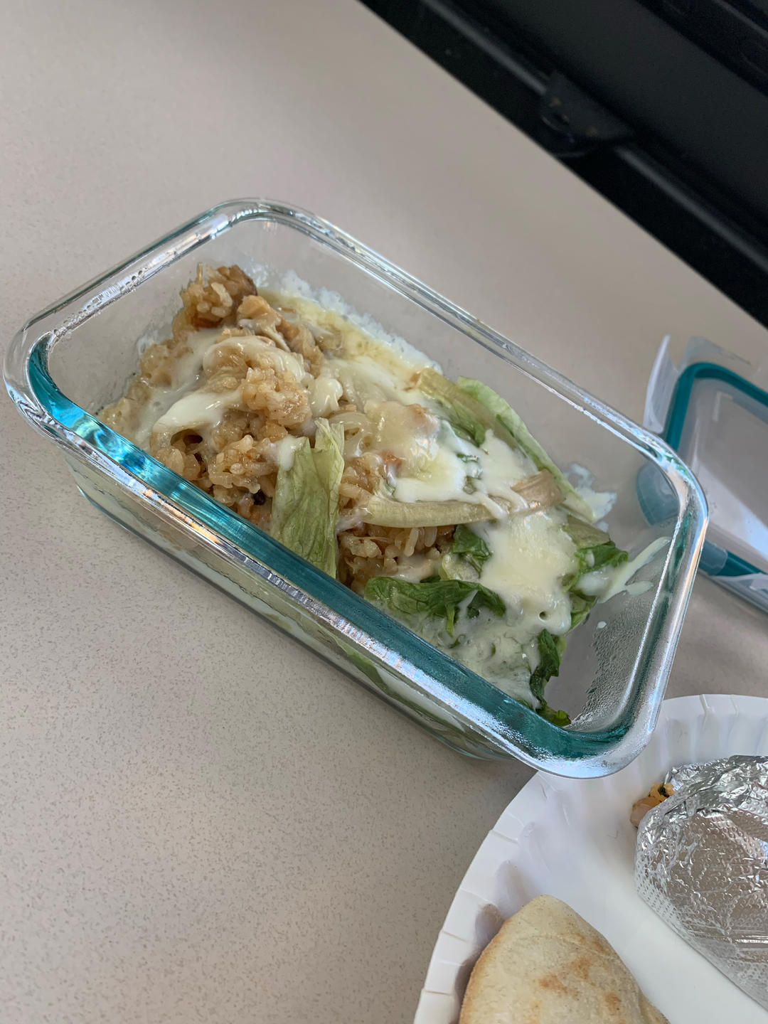 烫生菜和台湾油饭,撒了一些马苏里拉