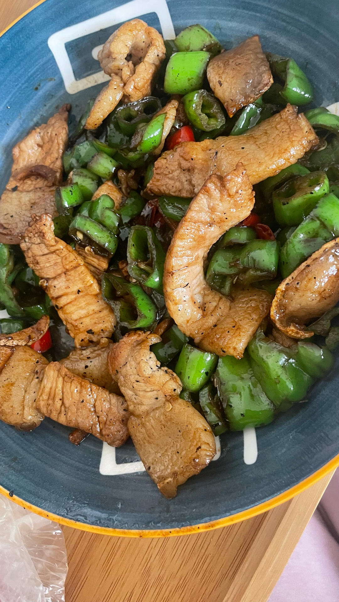 这个特别粘锅的锅给我厨艺减分了,腿肉没法像五花肉那样可以出油渣,不开心