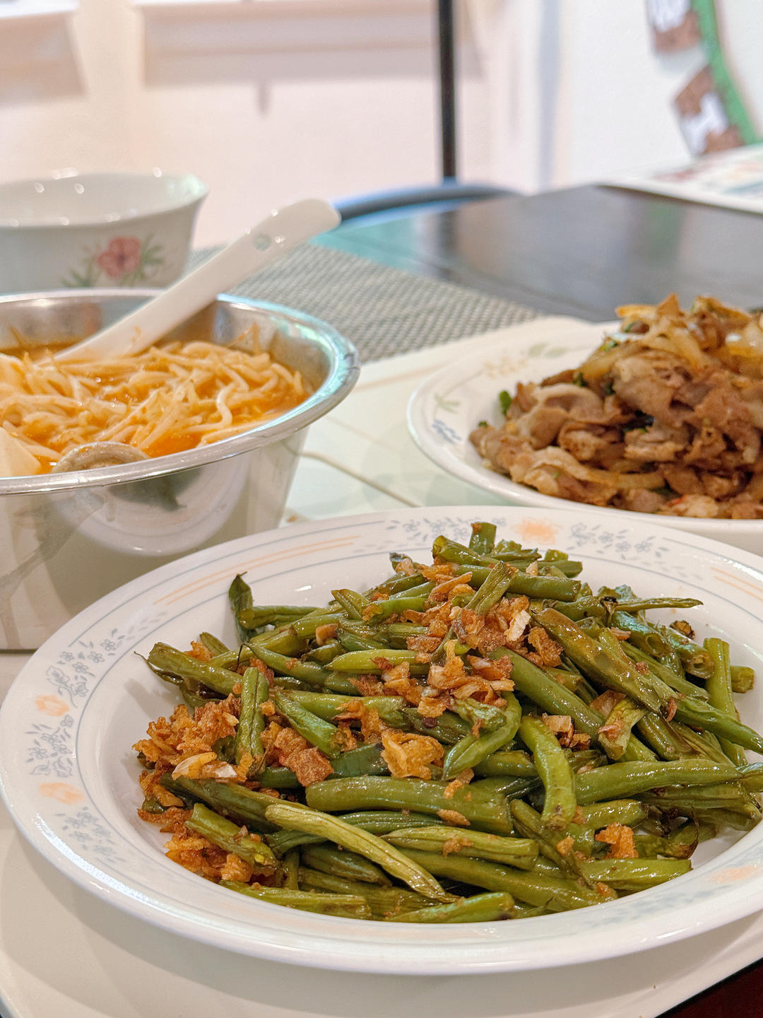 酸汤肥牛,蘑菇炒蛋,米饭。爱上了酸汤肥牛😄