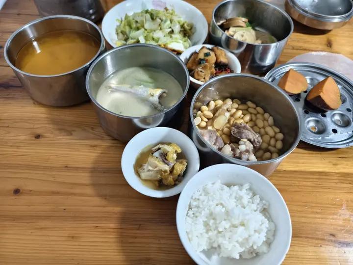 买了2斤紫米,提前浸泡4小时,焖了第一次的紫米饭,砂锅豆腐白菜煲、海参蒸蛋(海参放早了,都淹没在蛋液里😂)、雪菜炒肉沫(...