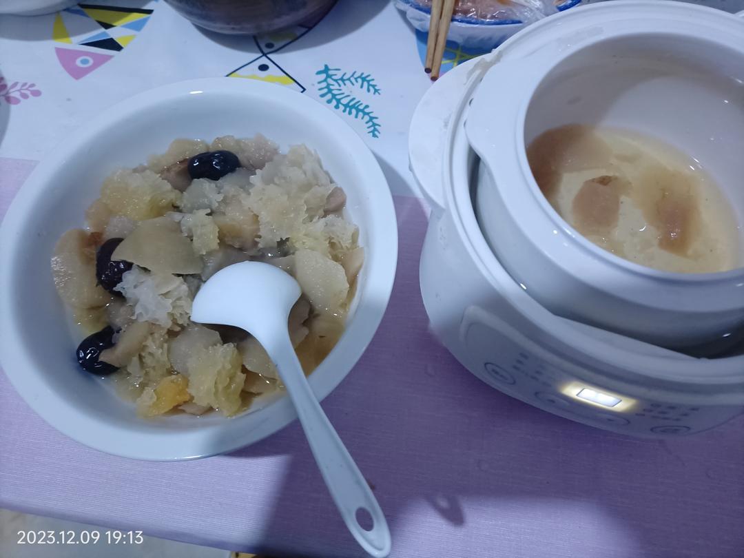 给我的锤锤加餐做的冰糖雪梨,灯光有点暗,卖相一般,但是味道很好。