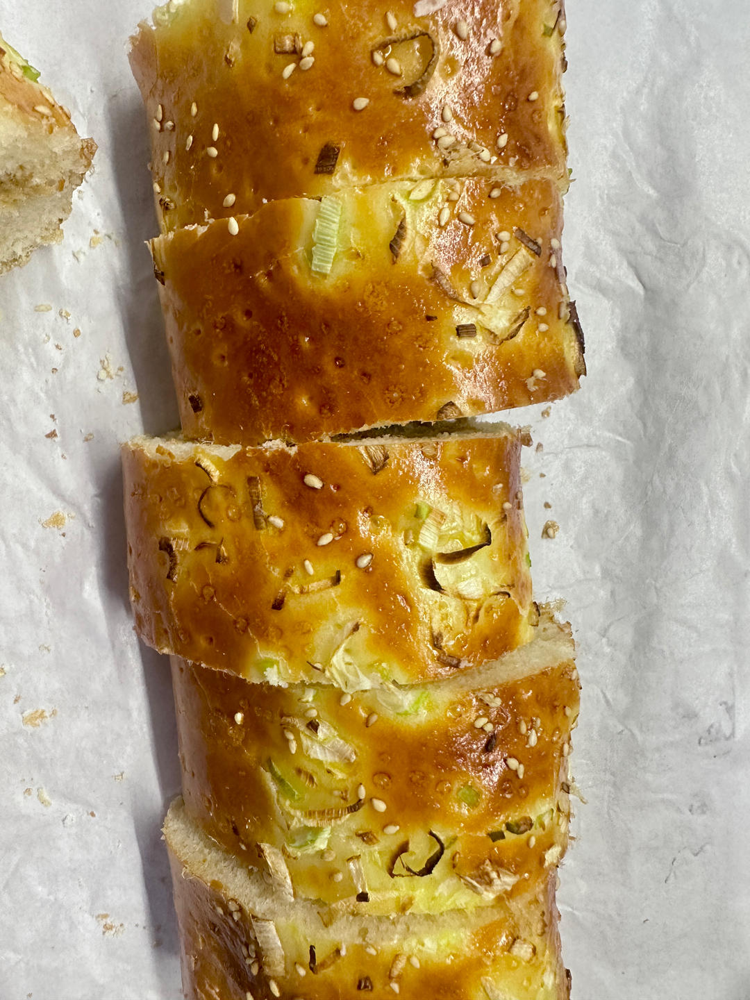 开裂了,原因大概是因为表面蛋液刷厚了,下次烤的时候可以放碗水,我的高筋面粉吸水量不行,...