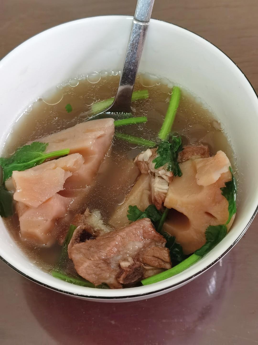 水量没过全部食材1.5指节高度,上汽后中小火20分钟妥妥的!藕粉肉香