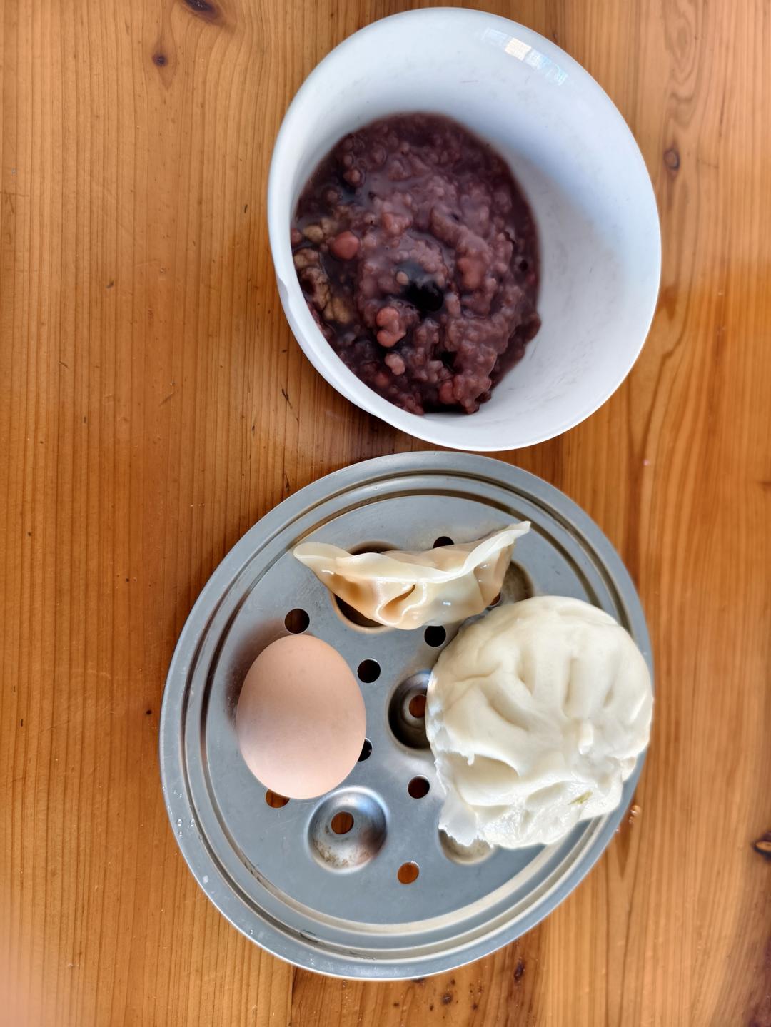 菠菜鸡蛋灌手抓饼+地瓜🍠玉米🌽糊+肉包+洋姜