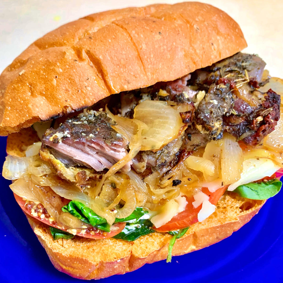🎄Leftover Steak with garlic aioli and caramelized onions #早...
