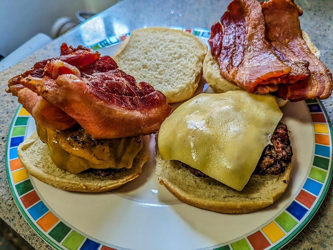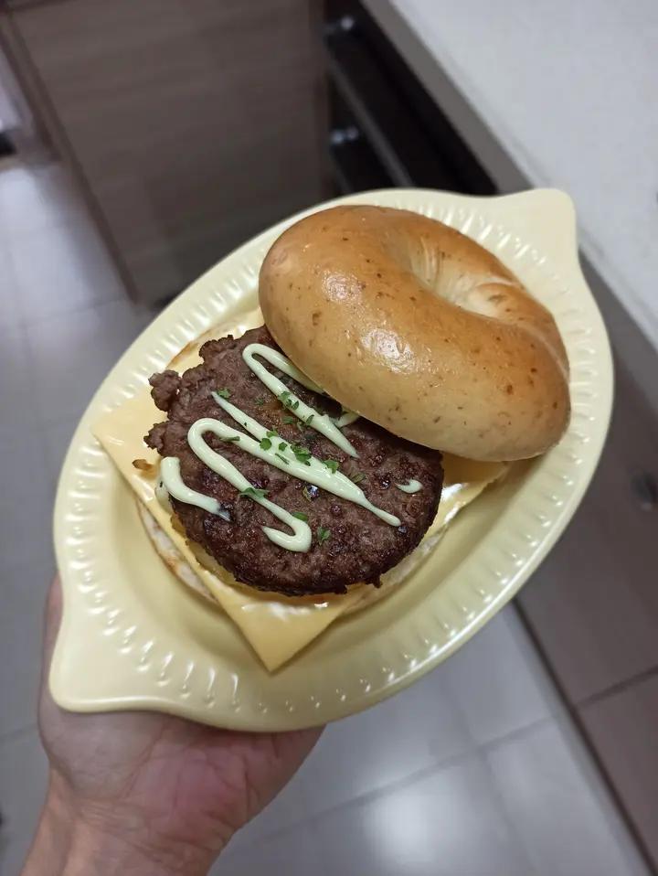有点丰富的牛肉贝果,芝士牛肉饼真不错,就是我煎得过于美拉德了,哈哈😃 # #享味欧洲...