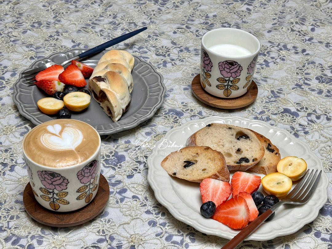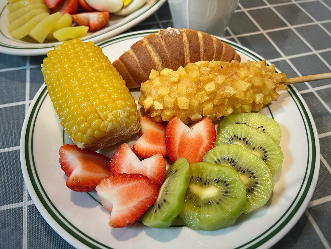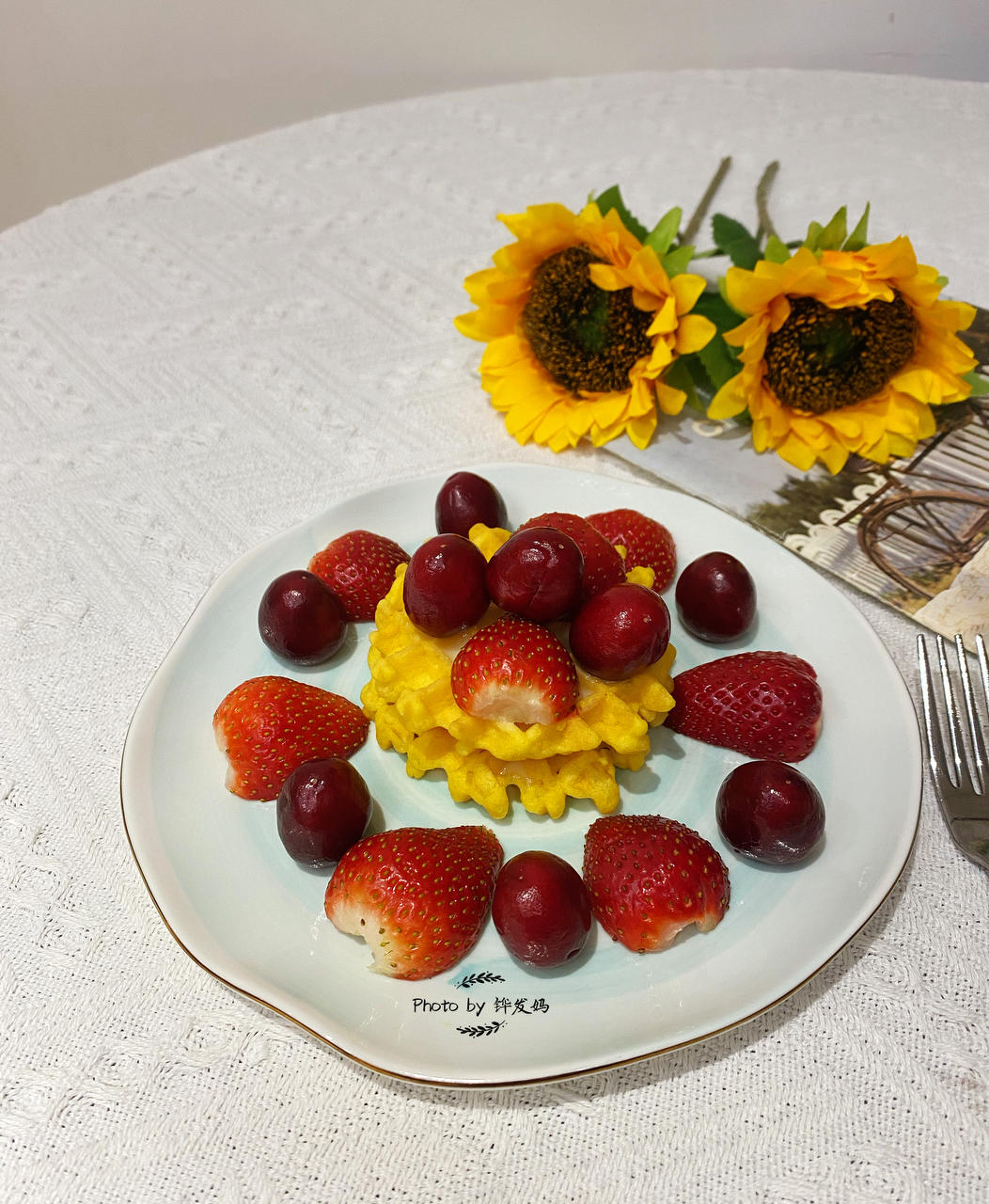 今日早餐:牛奶🥛、华夫饼🧇、车厘子🍒、草莓🍓!
