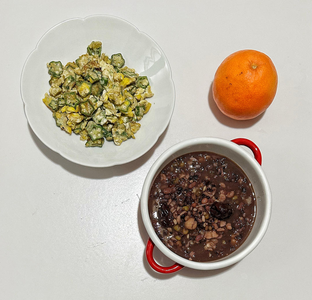 杂粮粥,秋葵炒蛋