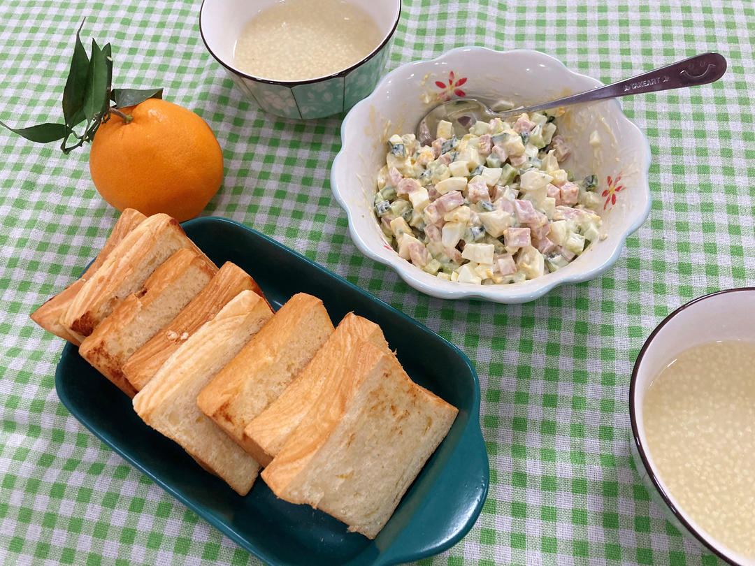 鸡蛋三明治,小米粥