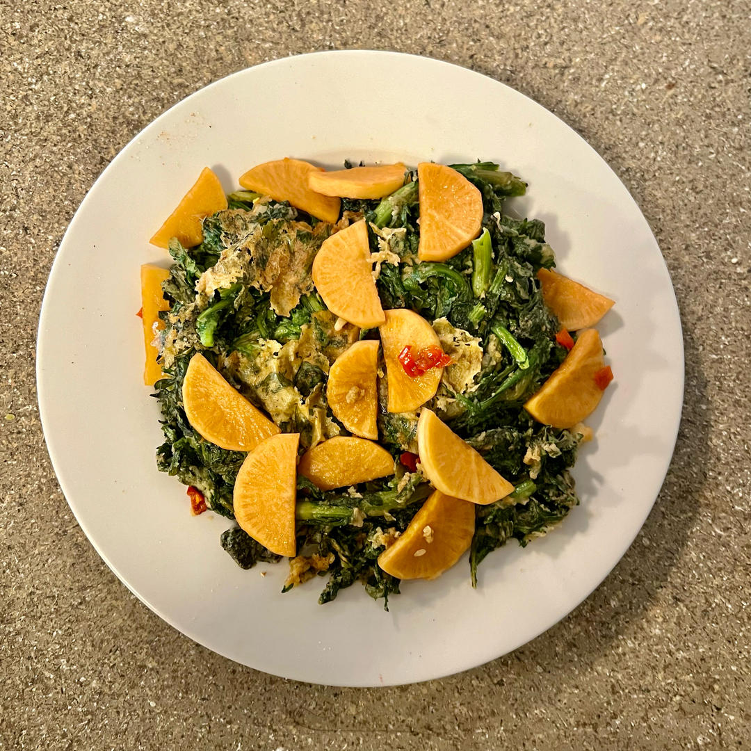 第一次尝试这个做法,放在饭上蒸了八九分钟好像挂的面糊不够熟,于是又锅里煎了一下(感觉做成饼也会很好吃!),淋了前...