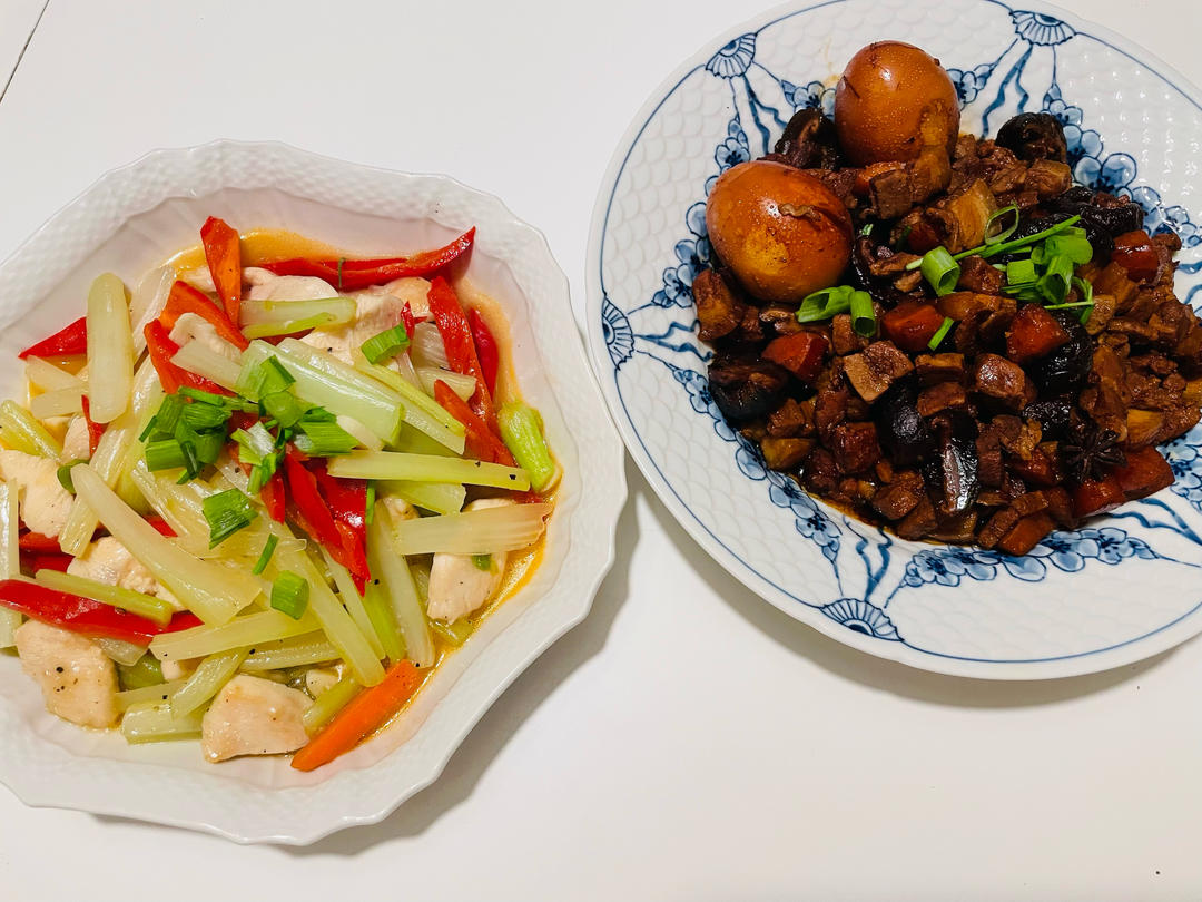 周五晚餐:卤肉饭,西芹炒鸡肉 😋