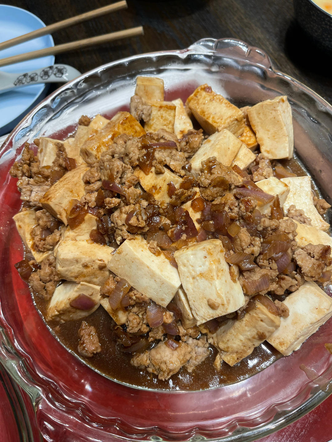 没有放豆瓣酱,改放了柱候醬,但这些酱料都很甜 下次不能放,但闻起来特别香浓