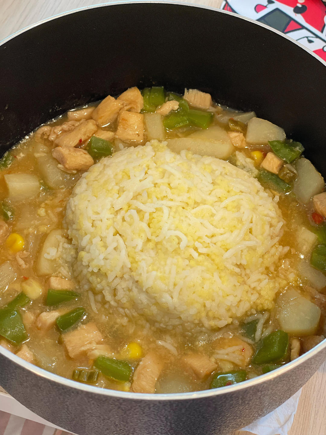 没有用胡萝卜而是用了青椒,感觉卖相一下就没那么诱人了,不过味道还是可以的
