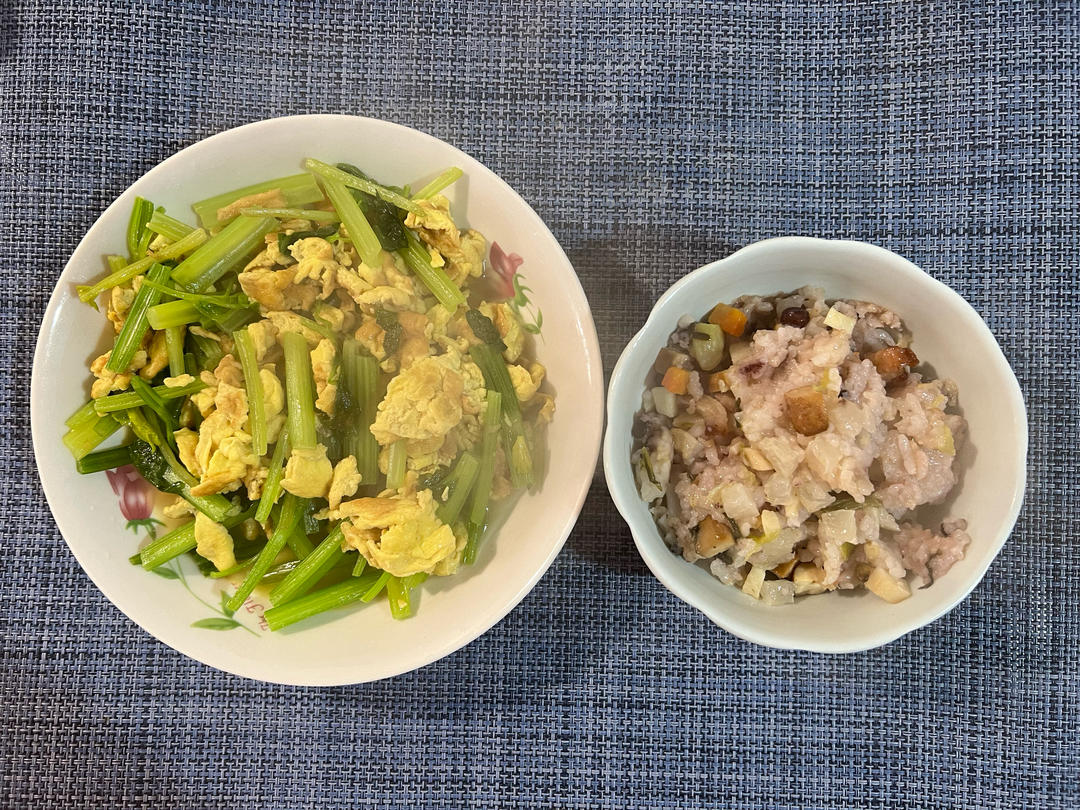 午餐:炒菜花🥦,韭黄炒鸡蛋,卤鸡🐔,主食杂粮米饭