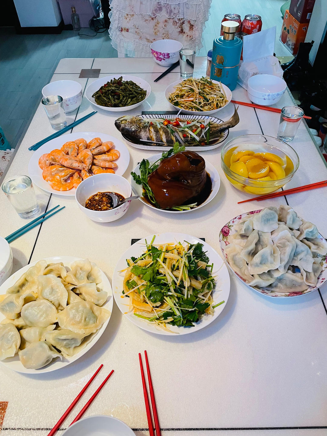 韭菜肉馅,寓意长长久久,第一批上班已走,年圆满结束,新生活开始,明年再聚