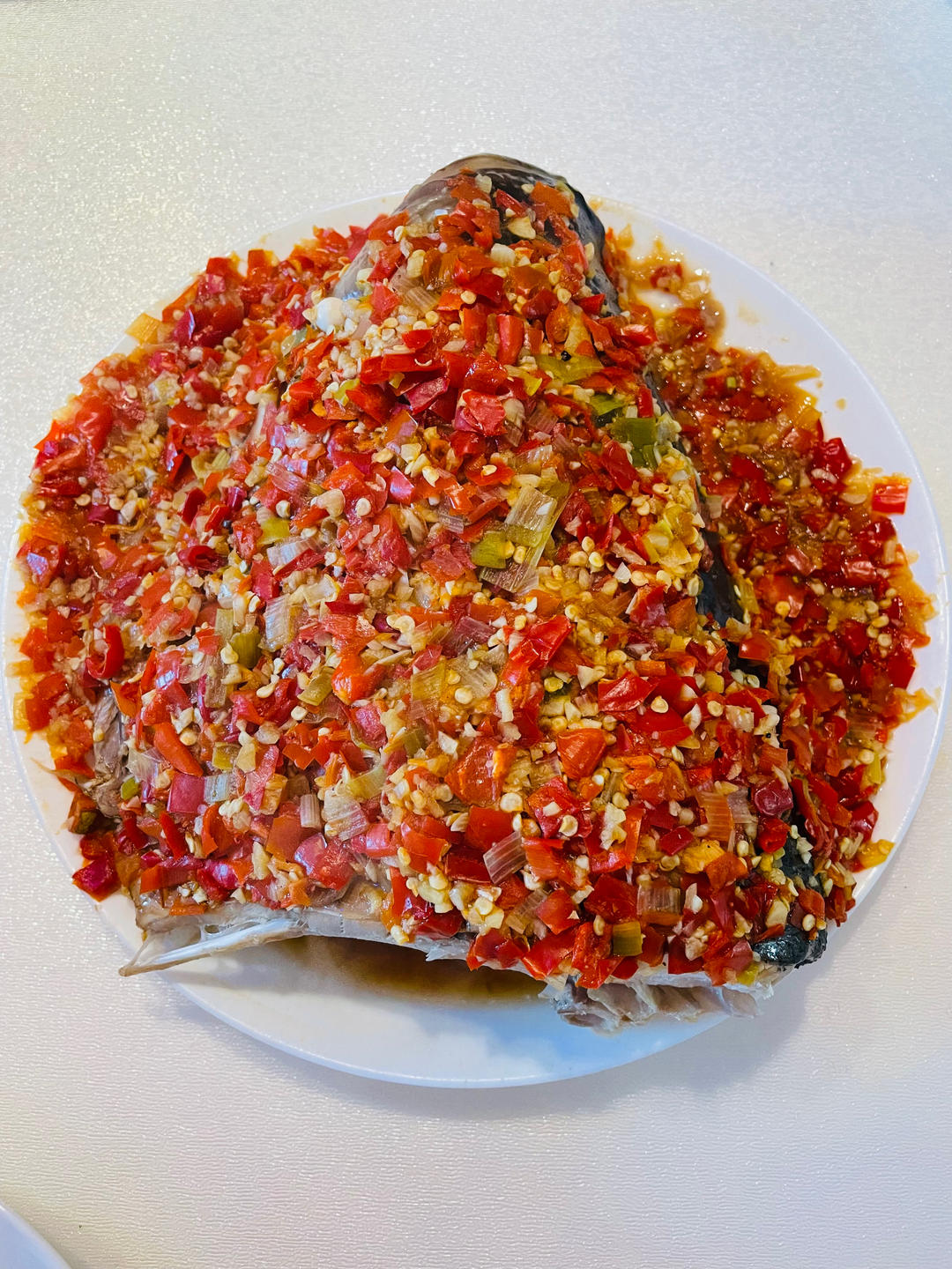 亲戚送了条好大的鱼,半个鱼头就蒸了一大盘