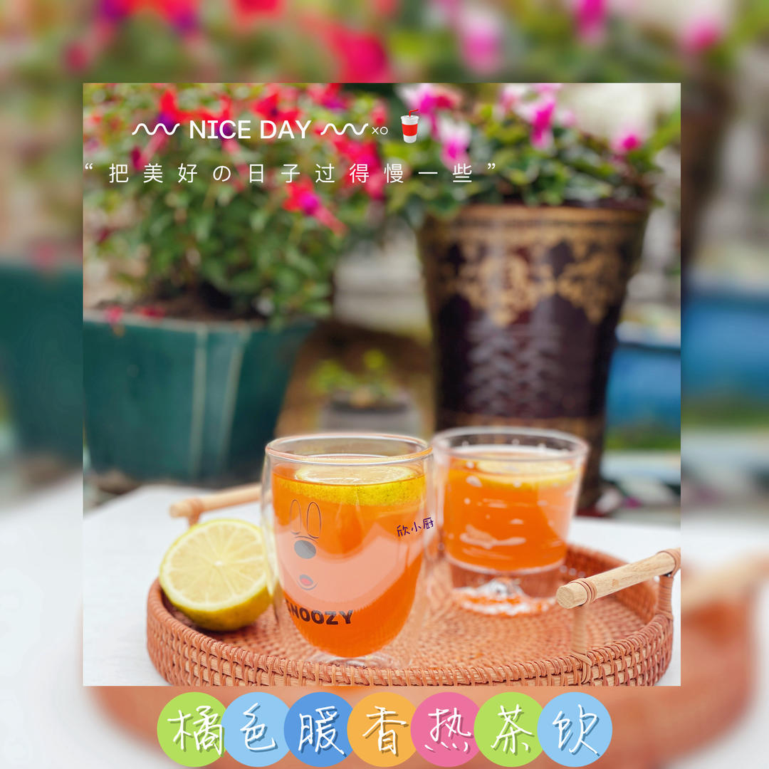 橘色暖香热茶饮