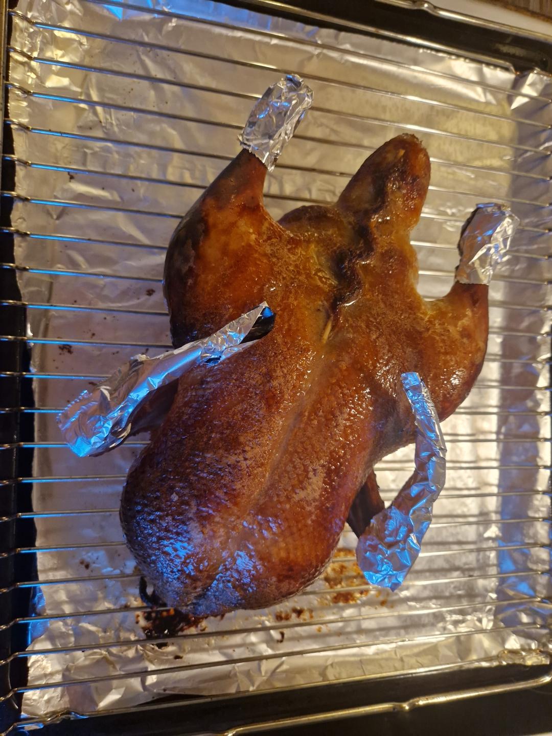 中超没找到侯柱酱,改成了北京鸭酱,味道很鲜甜,只是可以鸭皮没有办法做到和烤鸭店里一样那么厚实还脆。自家烤的鸭皮过了一会儿...