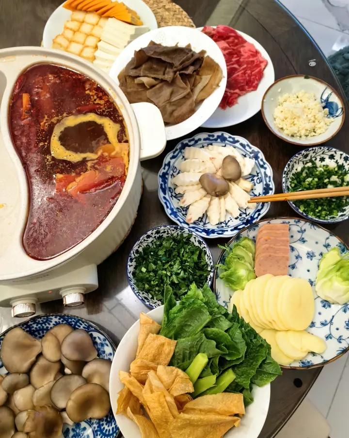 今天室外6℃,据天气预报知道这几天强降温,昨天就准备好了食材。所以今天按原定计划吃火锅。...
