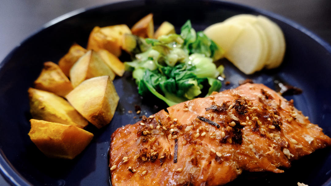 用这个菜谱烤的三文鱼,来打个卡。