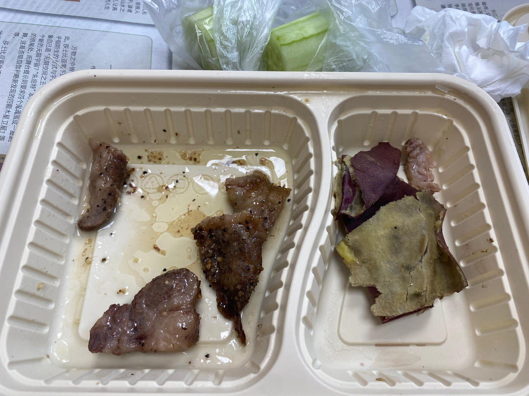忘了拍了。牛小排,半个番薯,一根黄瓜