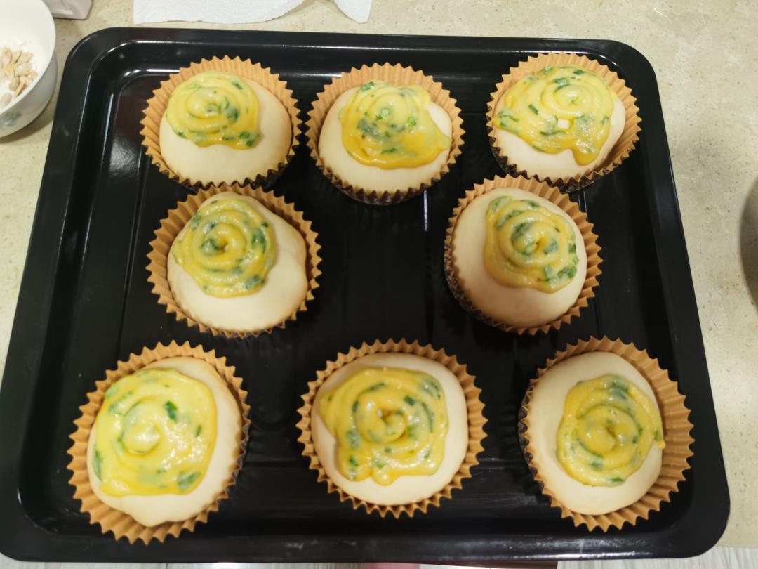 做了红豆瓜子仁和香葱肉松口味,咸甜都有。酥皮不是太够,下次做多点,香葱酥皮很香,谢谢方子。