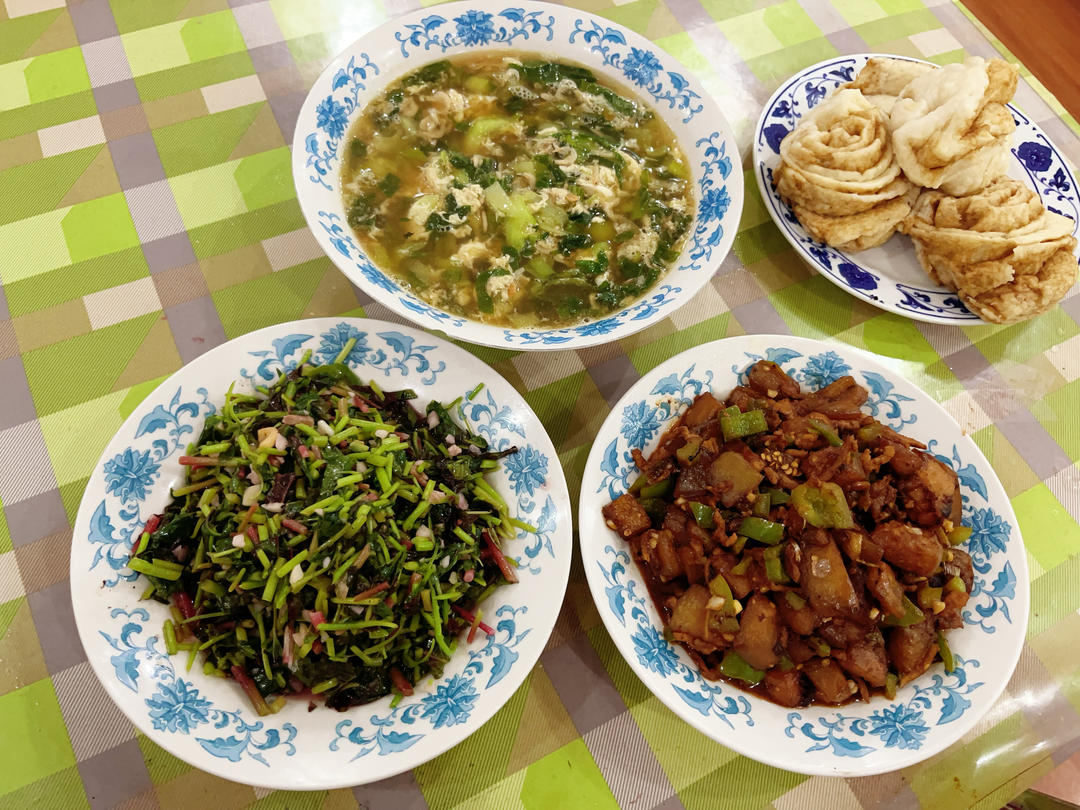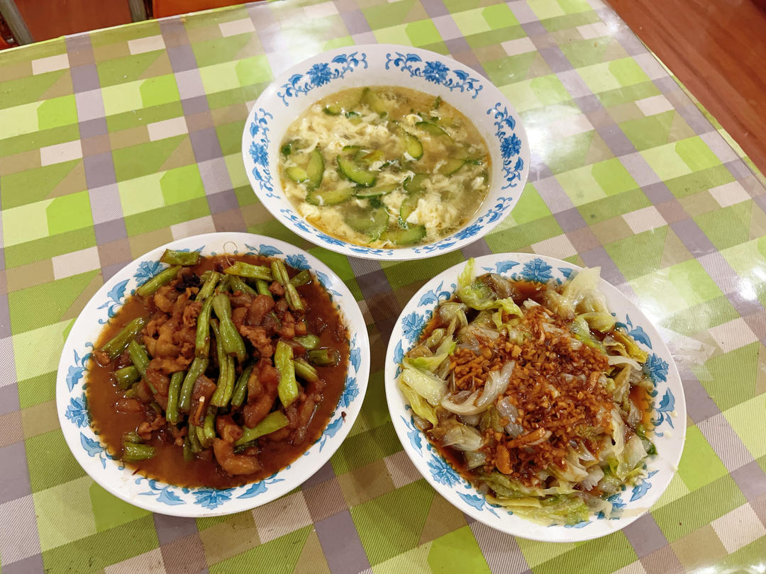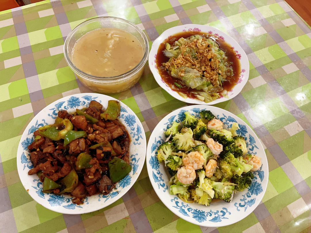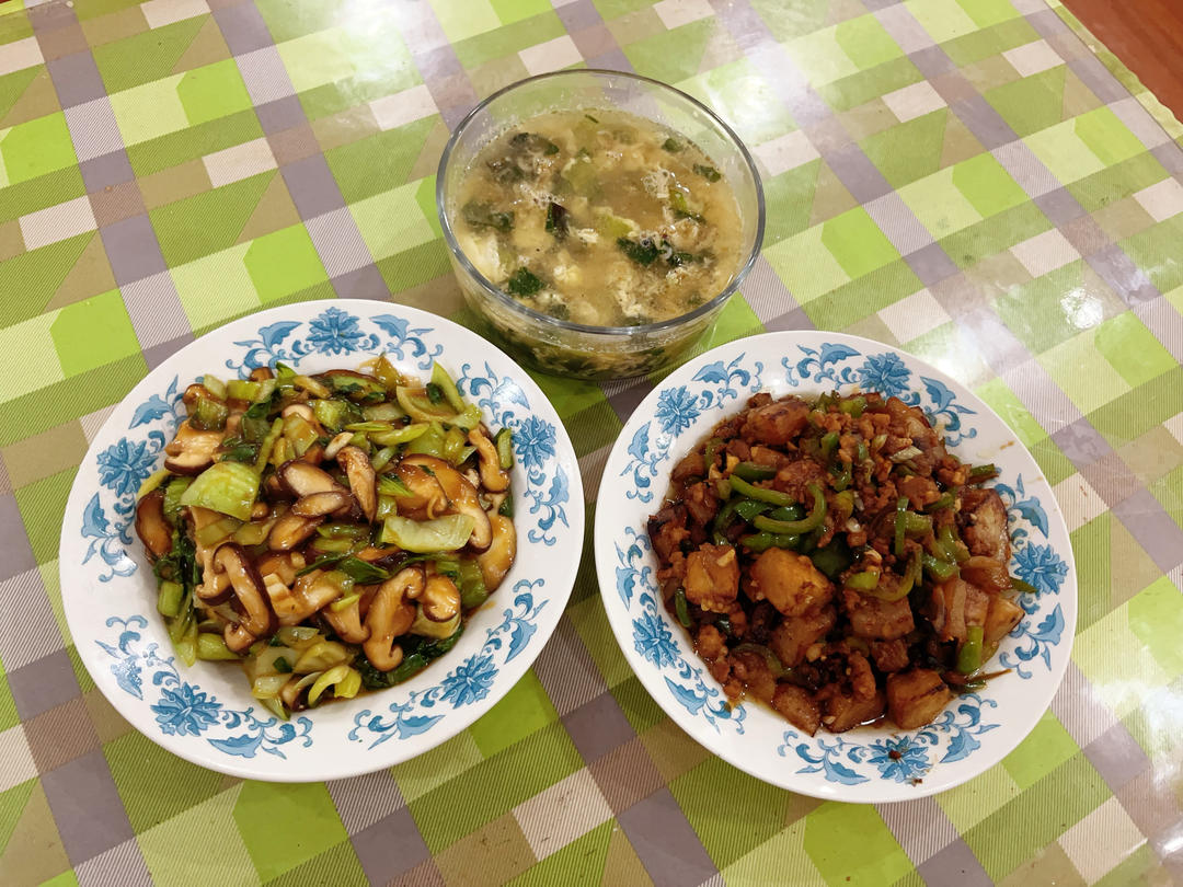 感谢城市轨道交通的发达,让我中午休时间都能给爸妈做个午饭:香菇油菜、肉沫烧茄子、虾皮油菜...