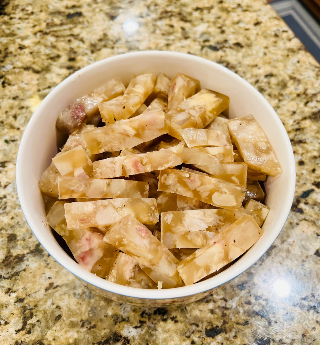 奶奶做的牛蹄筋冻,粘蒜醋汁吃,好吃停不下来