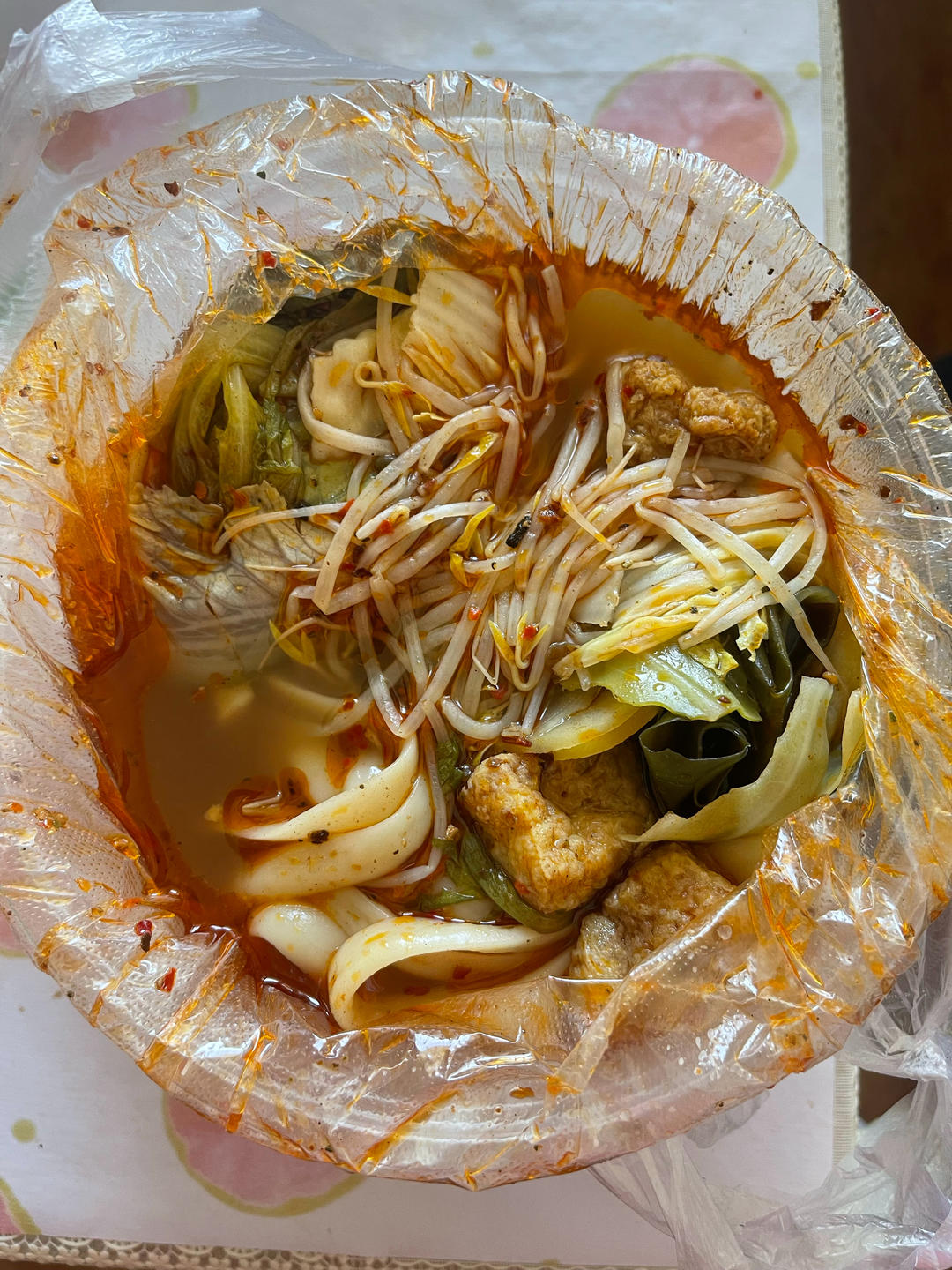 旅游回来第一顿就靠囤货了😝有啥放啥,两种馄饨+粉条+三种蔬菜+油豆腐,煮...