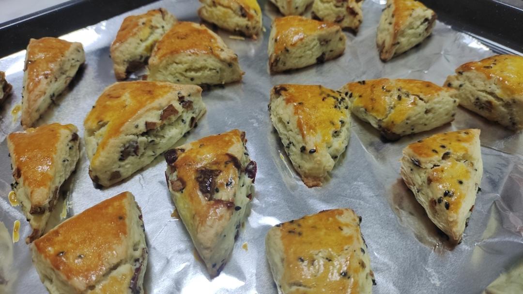 蔓越莓换成了35克红枣和10克黑芝麻,奶油多加了15毫升,出品完美,好吃的嘞