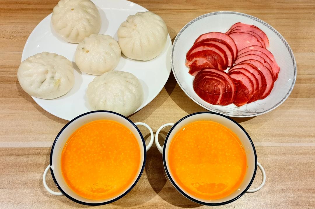 青菜香菇素包子,南瓜小米粥🎃昨天拌好的馅,临时有事出去了,冰箱里放了一天,一点儿没出水👍