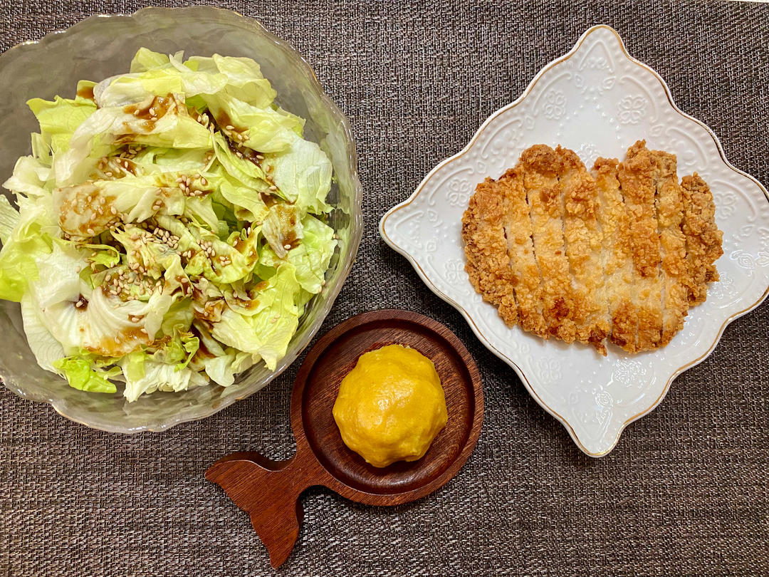 生菜沙拉(油醋汁)、炸鸡排、小窝头